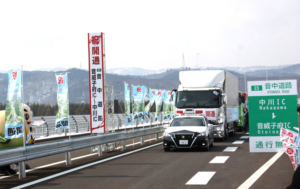 「音中道路(音威子府IC~中川IC)」が2026年3月22日(日)に開通しました。弊社は国土交通省北海道開発局旭川開発建設部よりご招待を受けて、開通式に参加させて頂きました。音中道路は、北海道音威子府村と中川町を結ぶ延長19.0km自動車専用道路です。これまでの国道40号の同区間では規模の大きな雪崩や落石等の危険性がありましたが、新しい道路ができたことで、道北圏における広域道路交通の安全性および定時性が向上します。弊社は、同路線の防雪対策検討業務を担当し、地吹雪や雪崩の現地調査や詳細設計を実施しました。